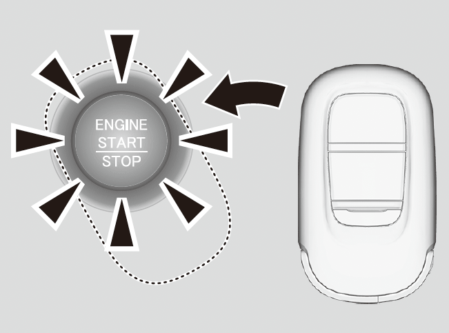 - ENGINE START/STOPが点滅している間に、HondaスマートキーのHondaエンブレムをスイッチに接触させる。