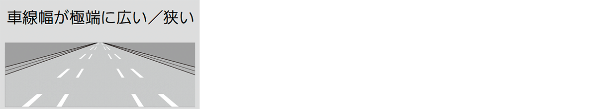 - 車線の幅が極端に狭いときや広いとき、または変化しているとき