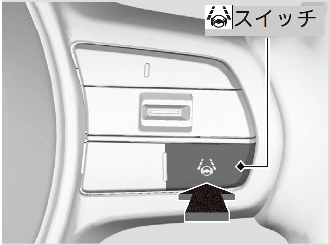 スイッチを押すと点灯し待機状態になります。 - カメラが両側の白線(黄線)を検知すると、メーターに車線表示(ホワイト)が点灯します。