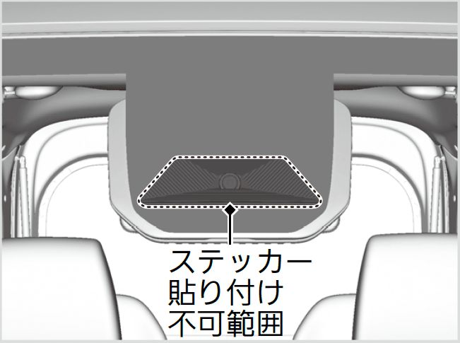フロントガラスにフィルムを貼ったり、カメラの視野を遮るものを取り付けないでください。