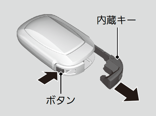Hondaスマートキーの電池が切れたときや車のバッテリーがあがったときは、内蔵キーを使用してください。