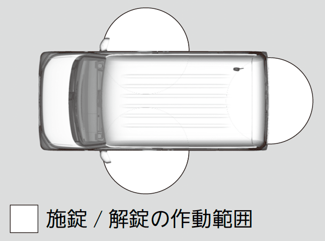 施錠/ 解錠が作動するのは、運転席または助手席ドアハンドル、テールゲートオープンスイッチから周囲約80cm以内です。