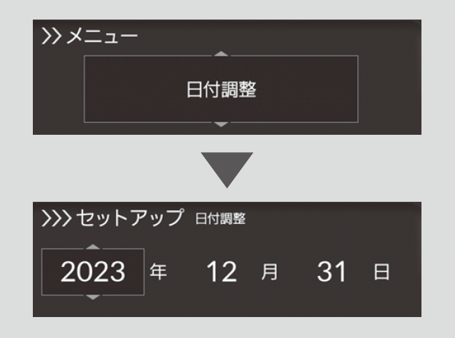- レフトセレクターホイールで「日付調整」を表示させ、決定する。
