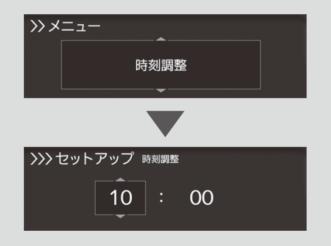 - レフトセレクターホイールで「時刻調整」を表示させ、決定する。