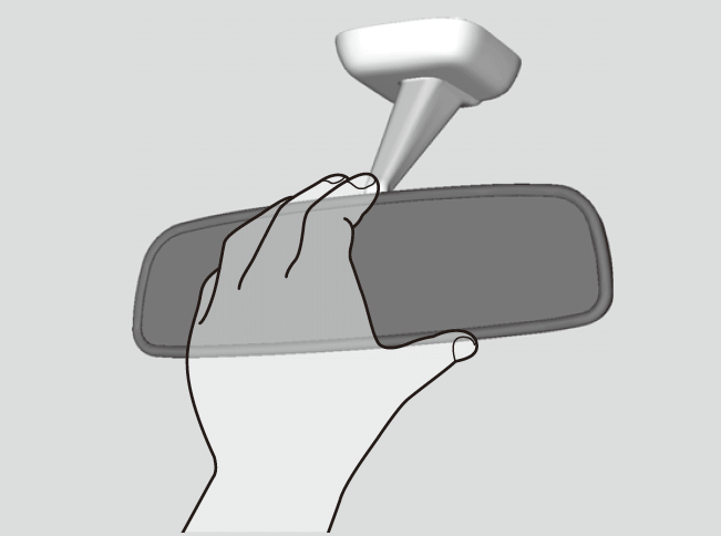 ルームミラーの角度は、正しい運転姿勢ですわった位置でミラーを調節してください。