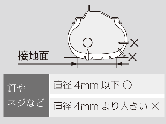 - 約4mm以上の切り傷や刺し傷によるパンクのとき