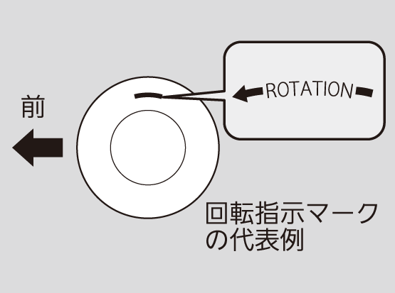 タイヤ回転方向が指定されているタイヤには、タイヤ回転指示マークがあります。図のように回転指示マークが前へ向くように取り付けてください。