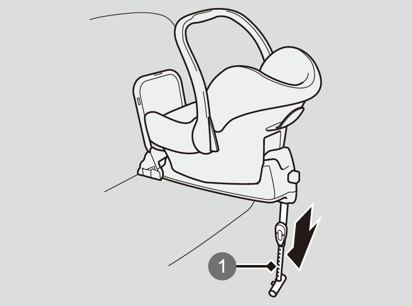 - サポートレッグをチャイルドシートの取扱説明書にしたがってフロアにつくまで伸ばす。