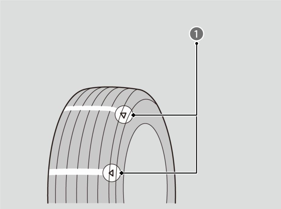 - 接地面が摩耗して、ウェアインジケーターと同じ高さになったら、タイヤを交換する必要があります。