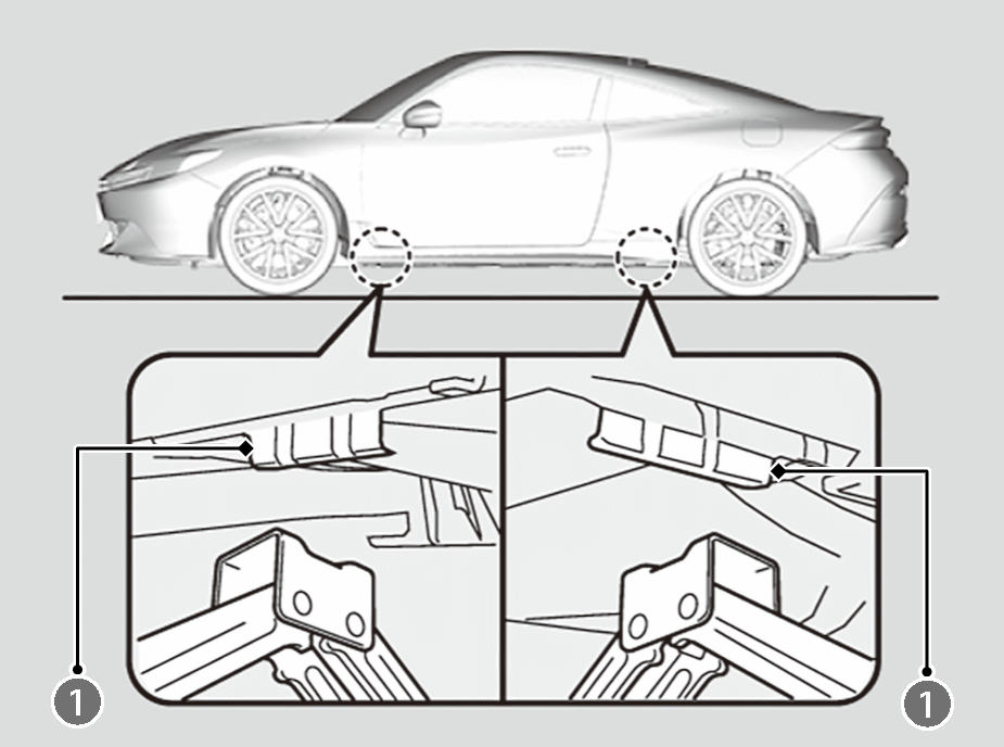)にもっとも近いジャッキポイントの下にジャッキ(別売り)を置く。