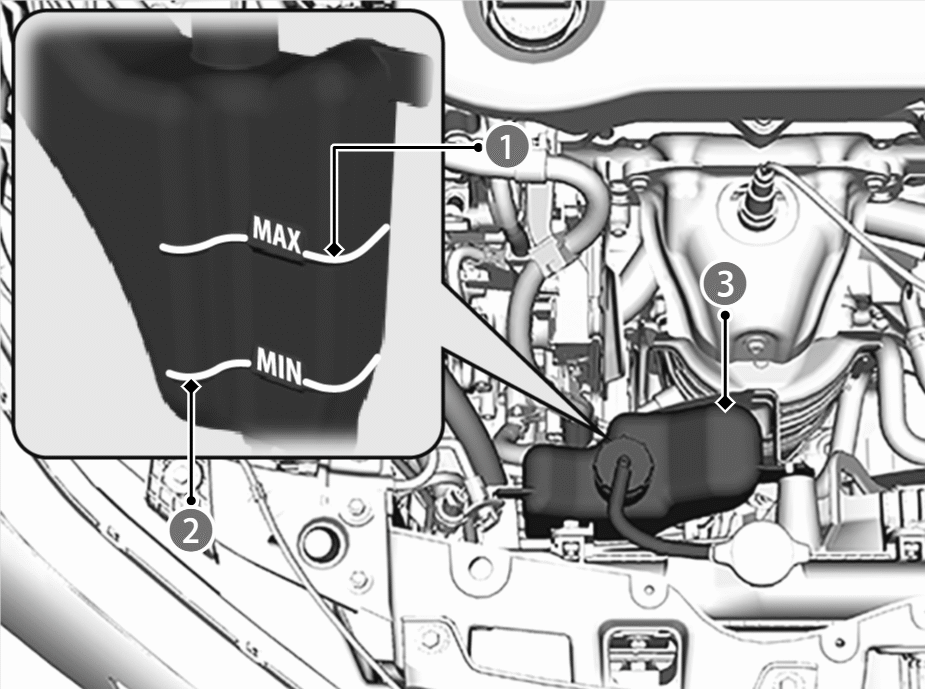 - 蒸気が出ている場合は、パワーシステムを停止し、蒸気が出なくなってからボンネットを開ける。