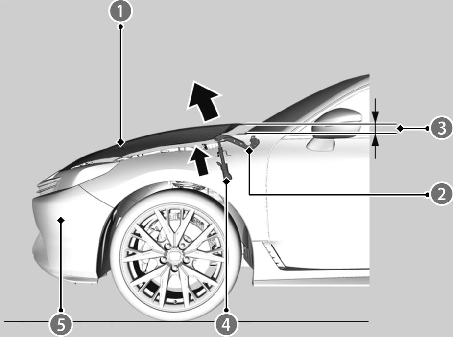 - フロントバンパー周辺を損傷したとき、またはポップアップフードシステムが作動したときは、Honda販売店で点検を受けてください。