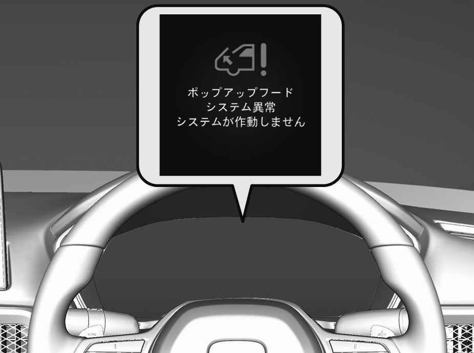 警告表示を無視すると、ポップアップフードシステムの異常につながることがあります。
