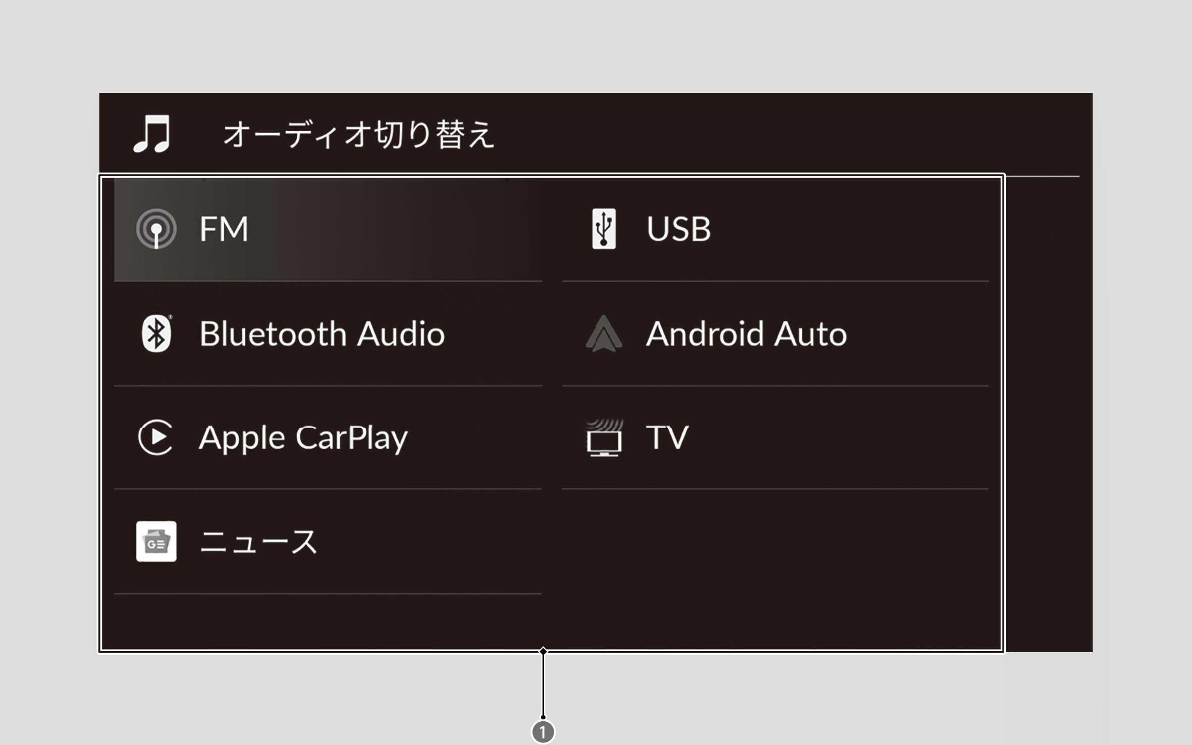 - 運転中は、注意力が散漫になるのを防ぐため、一部の項目がグレーアウトされることがあります。音声操作または停車すれば上記のアイテムを選択することができます。