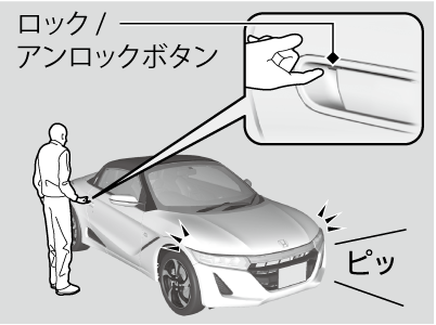 - ロック/アンロックボタンを押した直後にドアハンドルを引くと、ドアが開かないことがあります。ボタンをもう一度押し直して、解錠されていることを確認してからドアハンドルを引いてください。