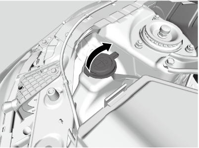 減っていた場合は、ウォッシャー液キャップを外し、ウォッシャータンクに補給します。