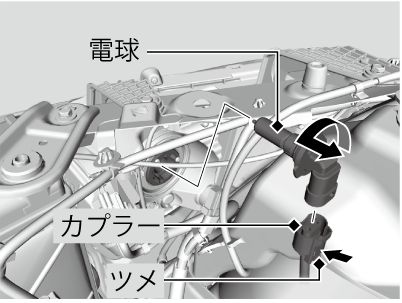 - 古い電球を左に回して抜き取る。