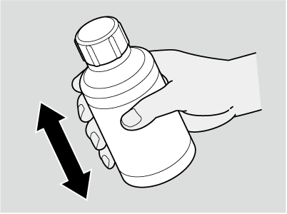- 全ての修理剤がタイヤの中に入るよう、手でボトルを何回も圧迫してください。