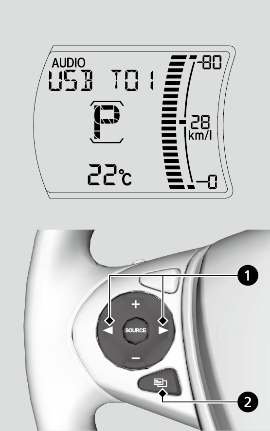 USBフラッシュメモリーデバイスに保存されているMP3やWMA音楽ファイルを再生することができます。USBデバイスをUSB ジャックに接続し、USBデバイスモードになるまでSOURCEを押します。