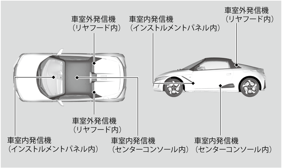 Honda スマートキーを使用してドアの施錠/解錠操作をするときやエンジンをかけるとき、Hondaスマートキーとの電子照合を行うために車両から電波が発信されます。