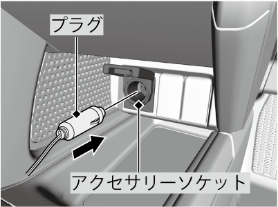 - エアコンプレッサーの電源コードのプラグを、アクセサリーソケットに差し込む。