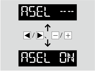 、-/+を押し、「ASEL ON」を選択する。- 周波数の低い順から、AM6局、FM12局を自動的に登録します。