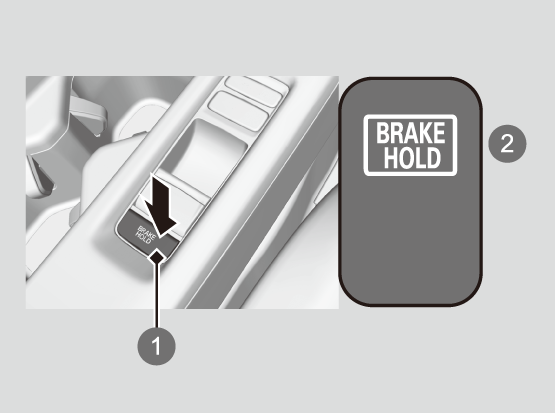 - ブレーキペダルを踏みながら、オートマチックブレーキホールドスイッチを押す