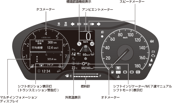 運転の状態を表示します。省燃費状態の時はアンビエントメーターの色が緑色に変化します。