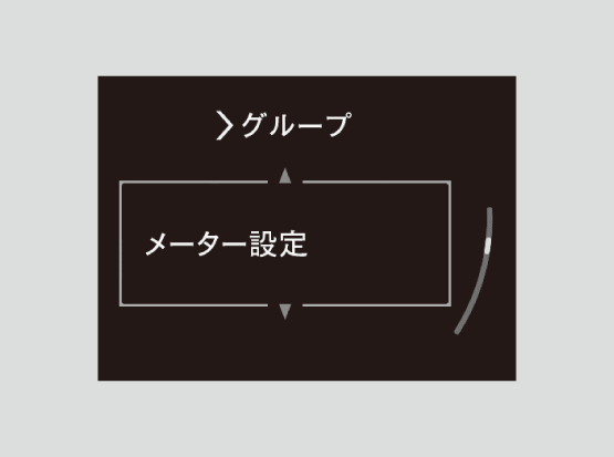 - 「グループ」画面に切り換わりますので、レフトセレクターホイールを回し、「メーター設定」を選択します。