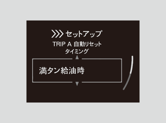 例えば「TRIP A 自動リセットタイミング」を「満タン給油時」にする場合、下記の手順で設定します。
