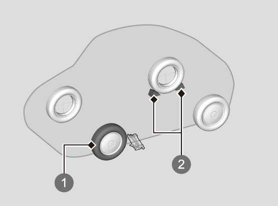 - 交換するタイヤの対角線上にあるタイヤの前後に、石などで輪留めをする。