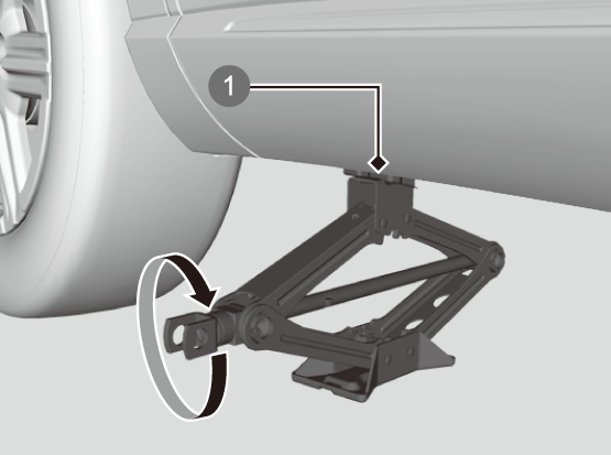 - ジャッキの上部がジャッキポイントに接触するまで図の部分を矢印の方向に回す。
