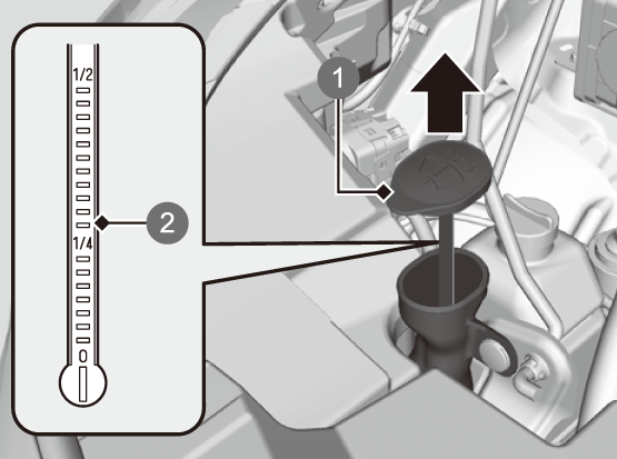 ウォッシャー液の量は、キャップに付いているウォッシャー液レベルゲージにより確認します。