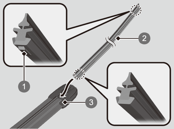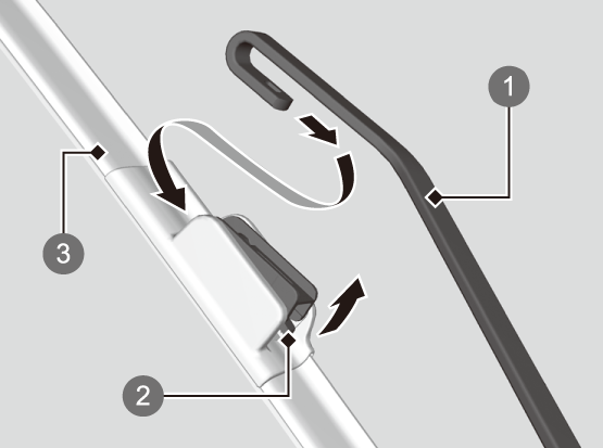 - ノブを押し上げながら、ワイパーアームからブレードをスライドさせて外す。