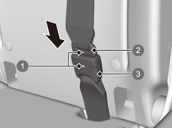 シートベルトを分離・収納するときは、タングプレートを▲マークがついているバックルの溝に差し込み、ラッチプレートを外してください。