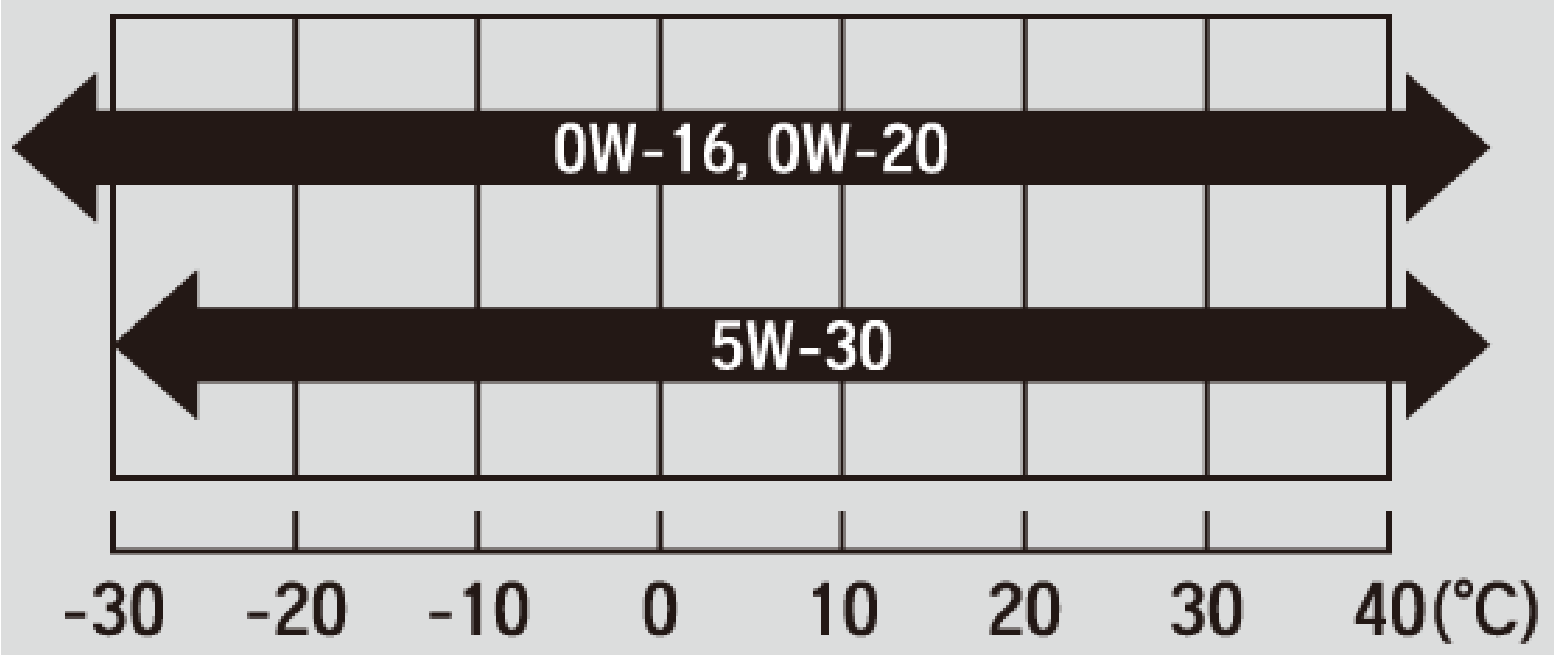 純正および市販のエンジンオイルは、種類と、(外気温に応じた)粘度について以下の表にもとづきお使いください。