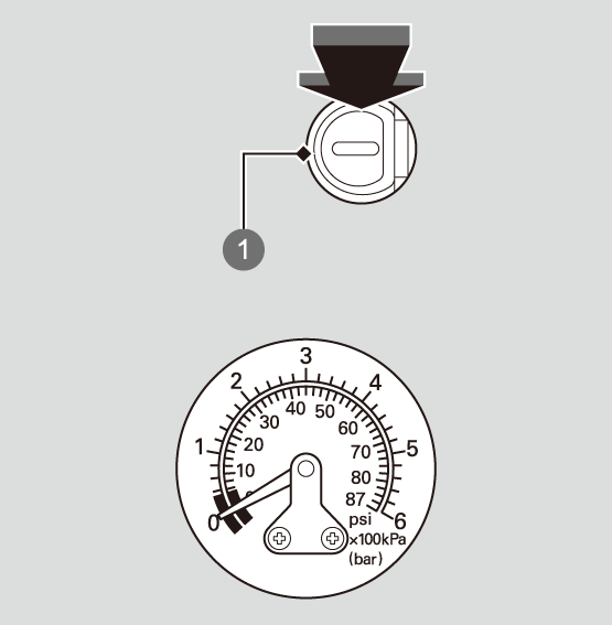 - 減圧ボタンを押して、空気圧計が0kPaになるまでエアを抜く。