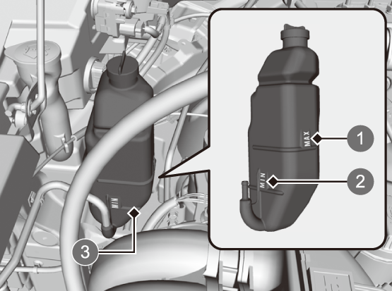 - 冷却水量が不足していたら、ラジエーターとリザーブタンクに冷却水を補給します。冷却水がない場合は、応急的に水を補給します。
