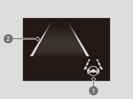 - 両側の白線(黄線)を検知するとシステムが作動を開始し、LKAS表示灯と車線表示がホワイトからグリーンになります。