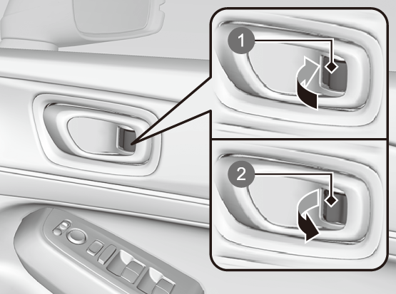 - 運転席ドアは、内側のハンドルを引くと施錠していてもドアが開きます。