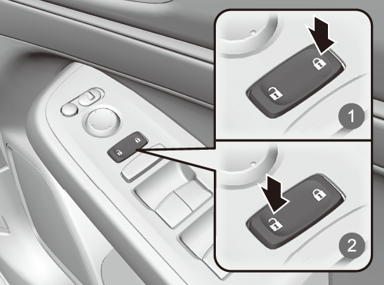 運転席ドアのマスタードアロックスイッチで施錠/解錠すると、ほかのすべてのドア、テールゲートも同時に施錠/解錠されます。