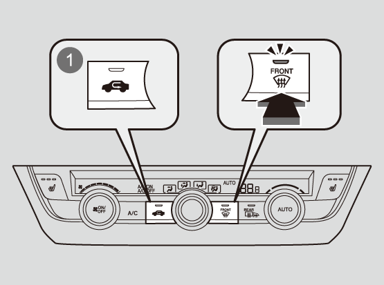 設定温度を最大冷房付近にしないでください。冷風が前面ガラスに当たると、ガラスの外側が曇ることがあります。