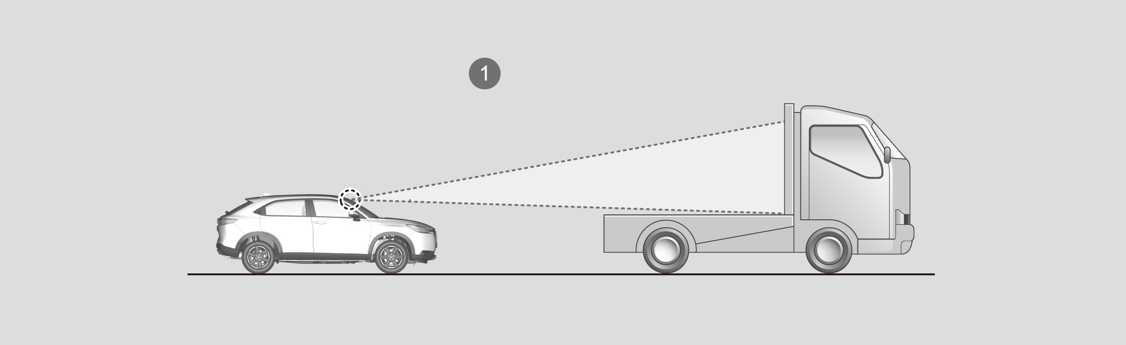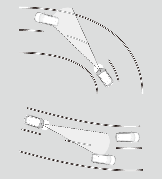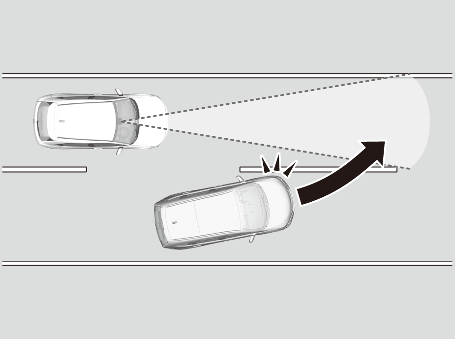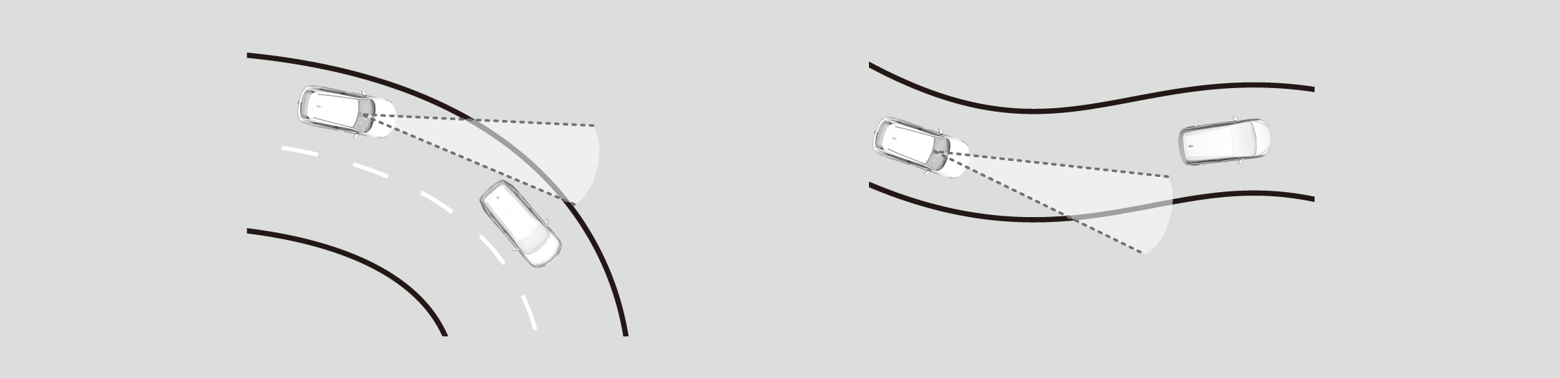 - 道路状況(カーブなど)や自車の状況(ハンドル操作や車線内の位置)によっては、一時的にとなりの車線の車や周囲の物に対して車間距離制御を行う場合があります。