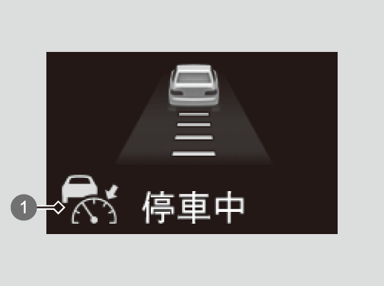 先行車が停車すると、自車も自動で停車します。メーターにメッセージが表示されます。