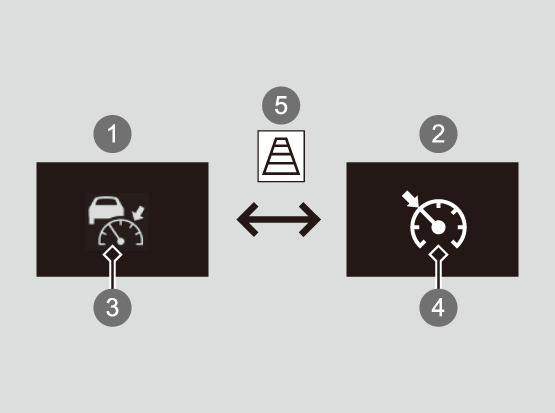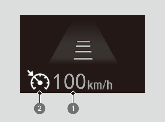 CANCELスイッチまたはブレーキペダルで解除した場合、その直前の設定車速がグレーで表示されます。RES/+スイッチを押した場合、この車速で作動が開始されます。