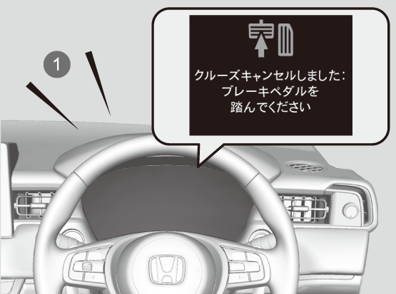 次の場合は、メッセージが表示され、「ピー」とブザーが鳴り、渋滞追従機能付ACCが自動解除されます。