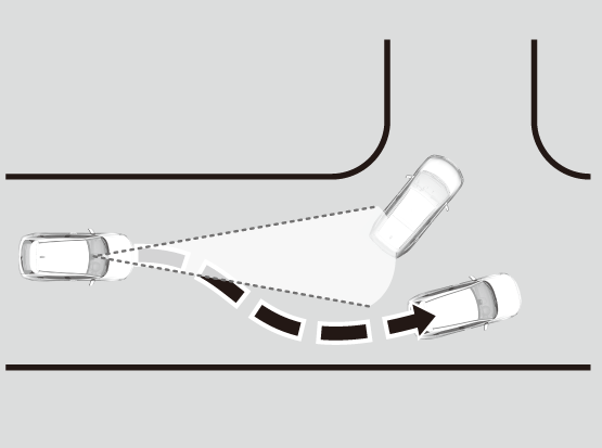 - 左折または右折中に車両(二輪車含む)、および自転車が自車の前方を通過しようとしているとき