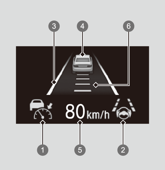 - LKASおよびトラフィックジャムアシスト(渋滞運転支援機能)の作動状態