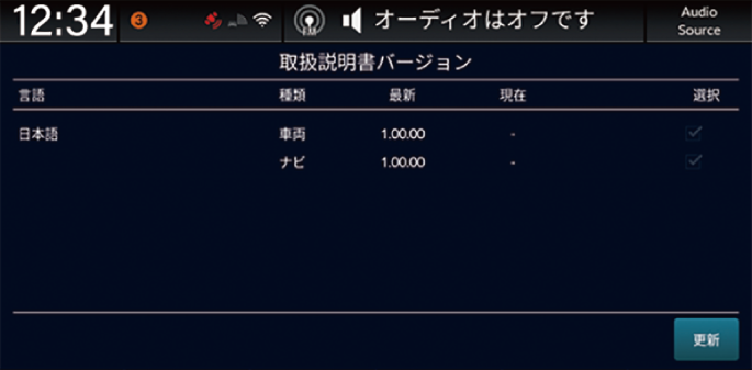 はじめてデジタルオーナーズマニュアルを利用するときは、車両をWi-Fiスポットに接続して、取扱説明書をインストールする必要があります。また、更新が可能な場合に通知が自動的に配信され、確認の後更新ができます。