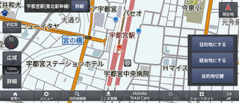 すでにルートが設定されている場合は、表示中の地点を新しい目的地としてルートを再設定します。 - 経由地にする:表示中の地点を経由地とするルートを設定します。